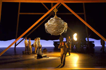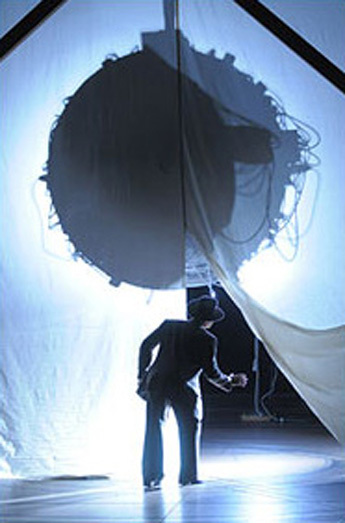 Long story, but I had been granted the privilege of attending the Chicago Lyric Opera’s premiere of Peter Sellars’s staging of John Adams’s Doctor Atomic, with its stunning evocation of the anguished passion of J. Robert Oppenheimer in the hours leading up to the Trinity test at the birth of the nuclear age—and, without going into a long summary of the opera’s plot or Adams’s bracing musical conception, suffice it to say that, as the story wends relentlessly toward its horrible climax, the bomb itself (which has loomed above the players, like a giant Medusa’s head, through most of the piece).