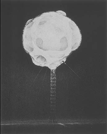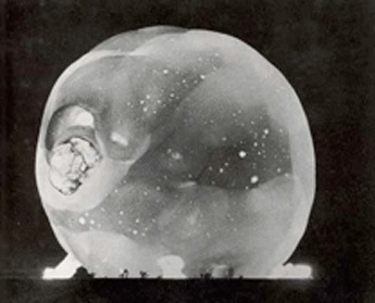 P.S. With regard to the Medusa’s head of the Trinity bomb, I am not unaware of that image’s rhyme with Chris Burden’s astonishing suspended dystopian planetoid of a sculpture from a few seasons back, now in MoMA’s collection: