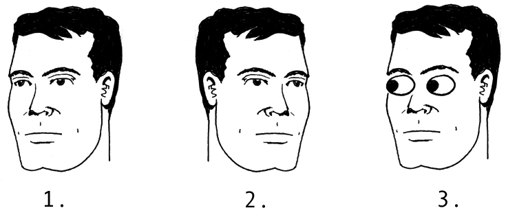 One of the masonry units of physical comedy – the chairman of the board of reactionary humor. This comedy device is to one’s repertoire what trinkets and beads were to the Native American Indian way back when – once you see it, you must have it! You will need full use of your eyes and eyebrows, mouth, neck, and sometimes ears in order to get the substantial laugh that accompanies this baby.