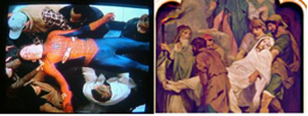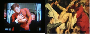 Or, in another instance, remember the “Aftersquib to the Foregoing” (just before Contest Winner No. 18), how the rhyme between the image of a cross-channel swimmer being pulled onto the beach and a painting of Christ being lifted down from the Cross in turn provoked a whole slew of observations about paparazzi and the Passion