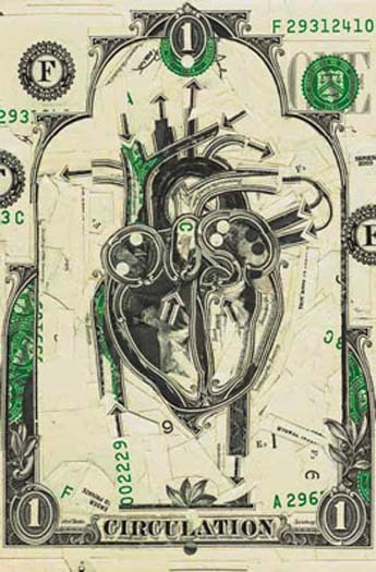 Well, take a look at this astonishing detail of a cut-dollar-bill collage (Twin Temples of the Heart) by the artist Mark Wagner, which we came upon just the other day in the second issue of The Sienese Shredder (http://sienese-shredder.com/2/wagner.html):