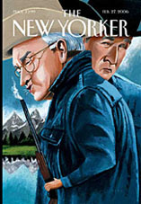 Curious about the uncanny rhyme, I mentioned it to a friend of mine who works at Time, and she wasn’t as surprised. She said that in-house there at the magazine of record, they had all been quite aware of the Brokeback-y resonance of their cover image; indeed, they’d even contemplated deploying the cover line “Damn it all, Dick, I wish I could quit you,” but had pulled back, for fear of alienating a sizable chunk of their putative readership. The New Yorker, for its part, showed no such compunctions. (Perhaps they figure they’ve already scared those readers away a long time ago.) At any rate, The New Yorker won that round.
