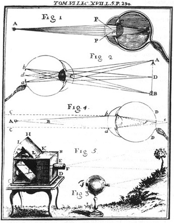 Except that it went deeper than that. Because, as we also saw (and I use the term advisedly), the workings of the camera obscura in turn became a model for the workings of the eye, as in this antique diagram: